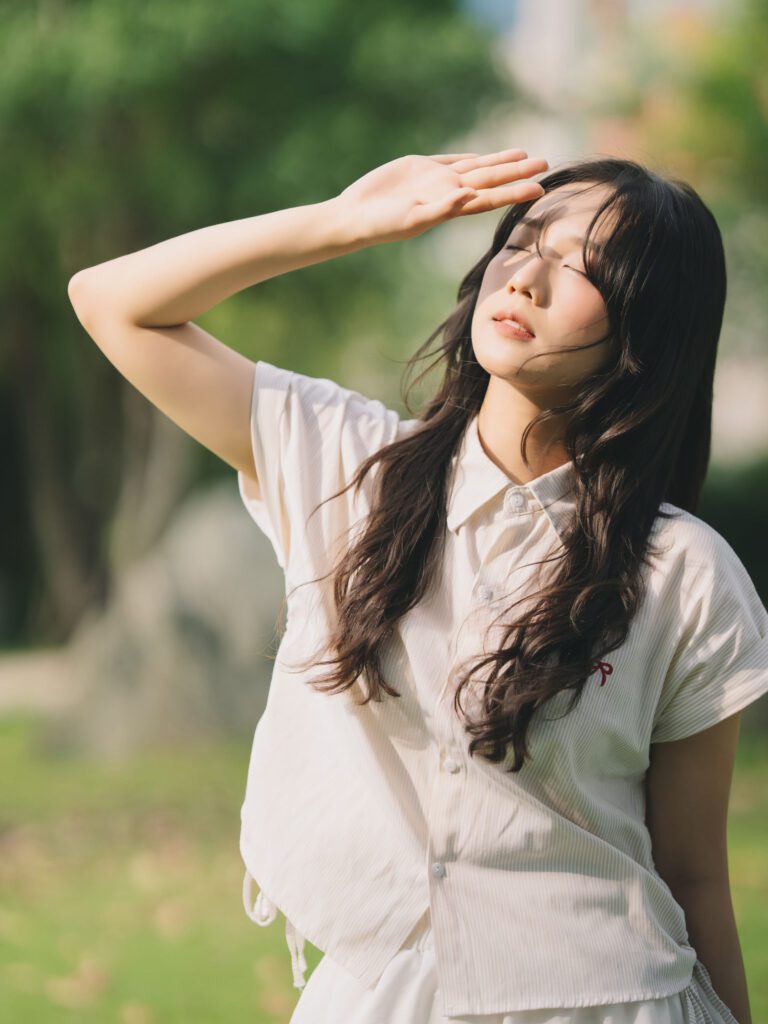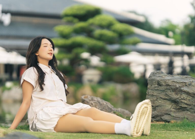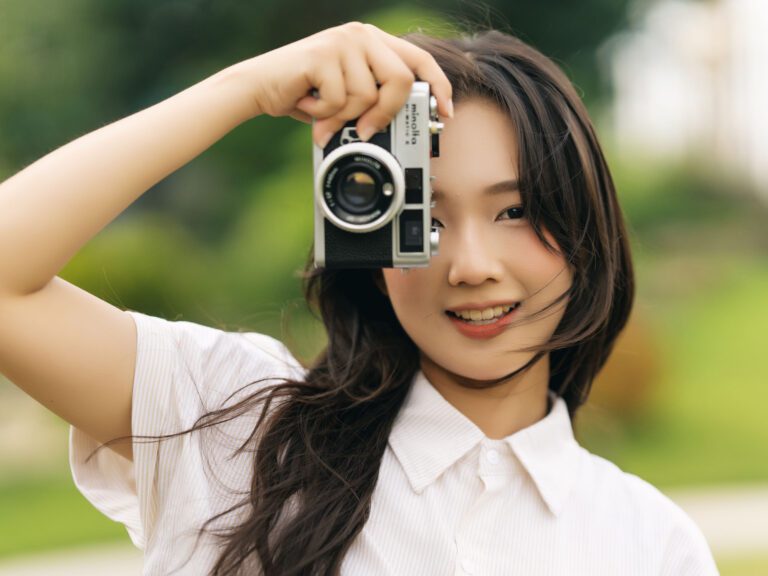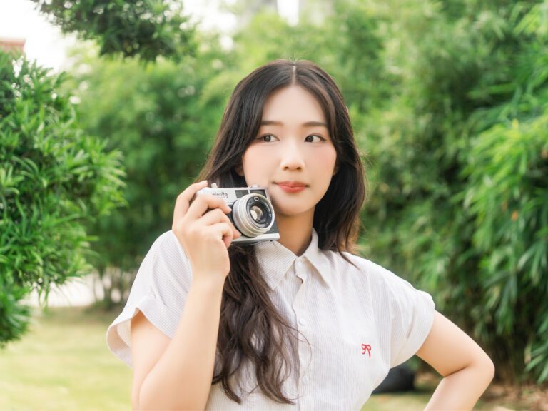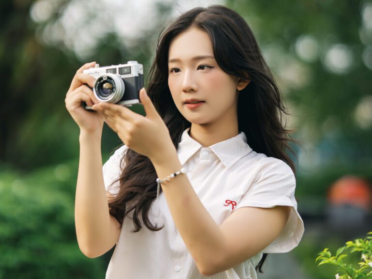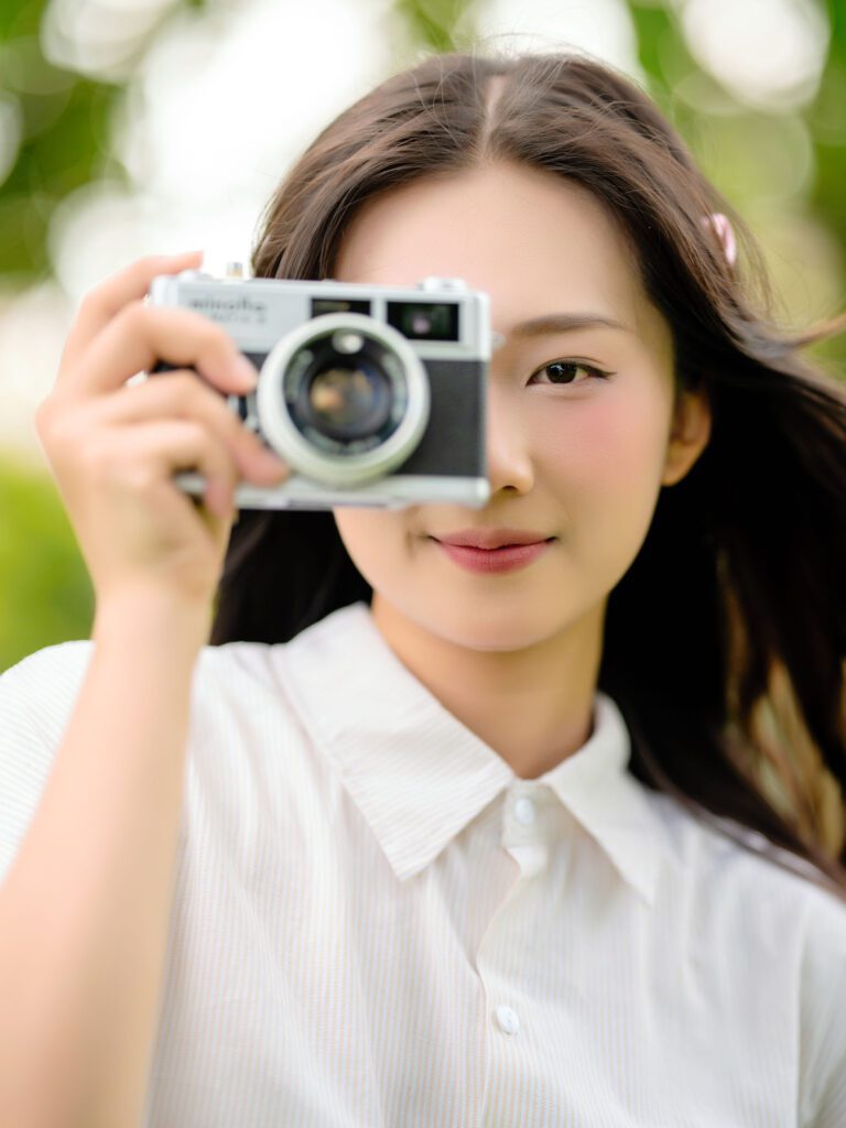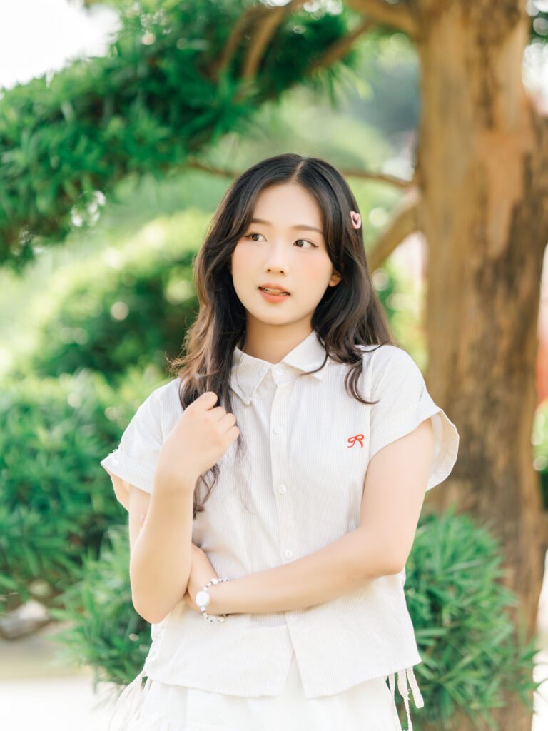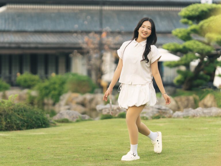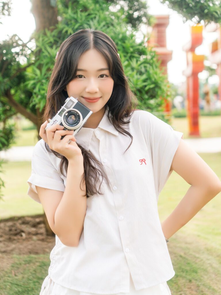 Để có được một bộ ảnh đa dạng, vừa bao quát được không gian kiến trúc hùng vĩ của Vườn Nhật, vừa đặc tả được những biểu cảm tinh tế của người mẫu, tôi đã linh hoạt sử dụng hai ống kính khác nhau trên thân máy Sony A7C2.
